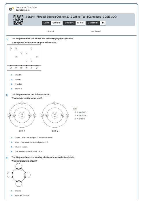 0652/11 Physical Science Oct Nov 2013 Online Test | Cambridge IGCSE MCQ