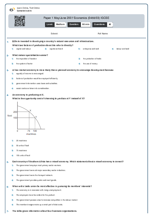Paper 1 May/June 2007 Economics (0455/03) IGCSE