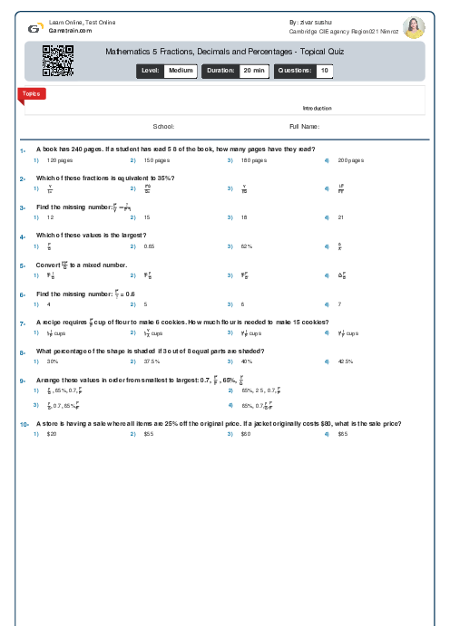 Mathematics 5 | Fractions, Decimals and Percentages - Topical Quiz