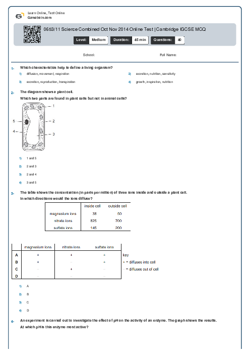 0653/11 Science Combined Oct Nov 2014 Online Test | Cambridge IGCSE MCQ