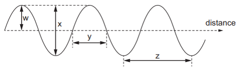 Which labelled arrows give the amplitude and the wavelength of the wave?