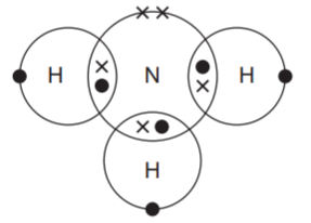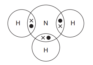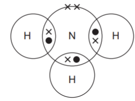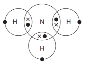 Which diagram shows the outer-shell electron arrangement in a molecule of ammonia?