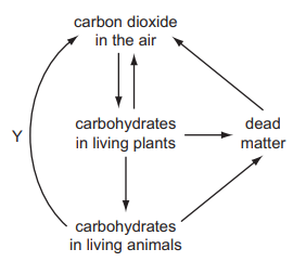 The diagram shows part of the carbon cycle.