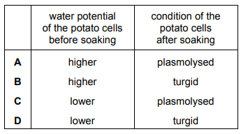 The potato cylinder was removed from the salt solution after one hour. It was blotted dry and then reweighed. The student recorded that the potato had lost mass.