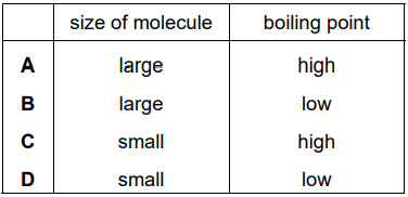 Which row describes the properties of the fractions that condense at the top of the fractionating column?