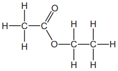The diagram shows the structure of a molecule of ethyl ethanoate.