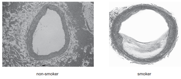 The photomicrographs show a TS of an artery from a non-smoker and a TS of an artery from a smoker.