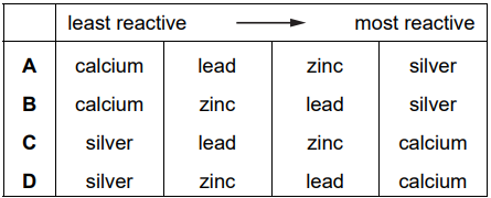 What is the order of reactivity starting with the least reactive?