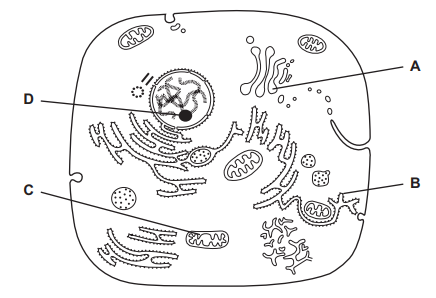 The diagram shows the ultrastructure of a eukaryotic cell.
