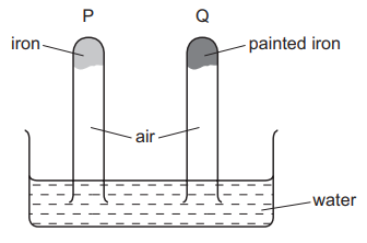 The diagram shows an experiment to investigate how paint affects the rusting of iron.