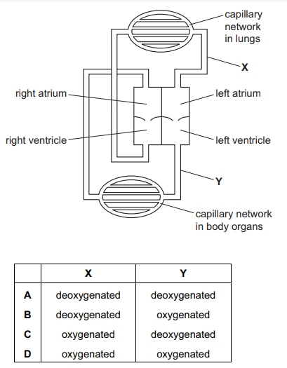 What describes the blood in vessels X and Y?