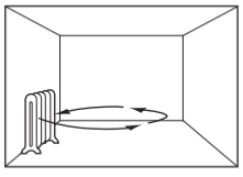 A heater is placed in a room.