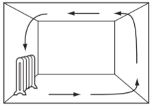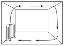 Which diagram shows the movement of air as the room is heated?