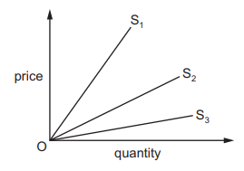 At any price, the price elasticity of supply of ${S_1}$ will be less than that of ${S_3}$.