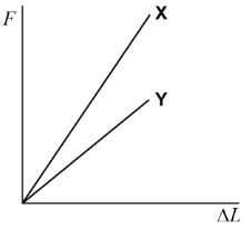 Two separate wires X and Y have the same original length and cross-sectional area. The graph shows the extension ΔL produced in X and Y when the tensile force F applied to the wires is increased up to the point where they break.
