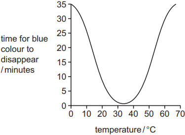 A dilute starch solution turns blue when very dilute iodine solution is added. This colour disappears as the starch is broken down by amylase.