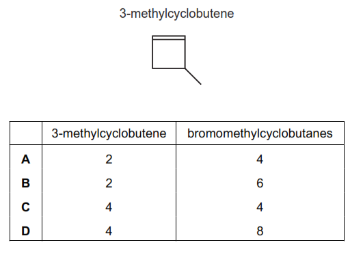 A mixture containing all stereoisomers of 3-methylcyclobutene is treated with HBr. This produces a mixture of isomeric bromomethylcyclobutanes.
