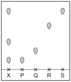 Substance X and four known substances, P, Q, R and S, are analysed by chromatography.