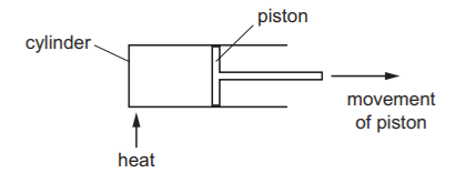 The air inside the cylinder is heated. The piston moves in the direction shown.