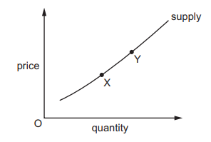 The market equilibrium is initially at point X, but a change moves it to point Y.