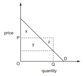 The diagram shows an individual’s demand curve for a commodity.