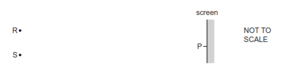 Light of wavelength $λ$ is emitted from two point sources $R$ and $S$ and falls onto a distant screen.