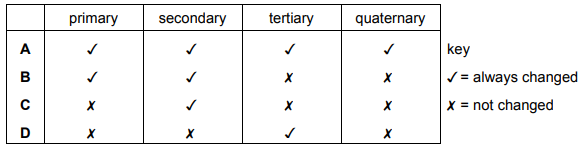 Which levels of protein structure would always be changed if an enzyme works by the induced fit hypothesis?
