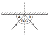 The diagram shows a plane mirror and a ray of light reflected from it.