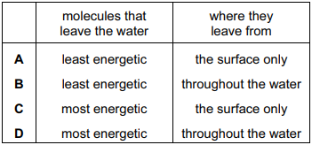 Which molecules leave the water and from which part of the water do they leave?
