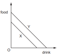 Countries X and Y have identical resources. The diagram shows their production possibility curves.