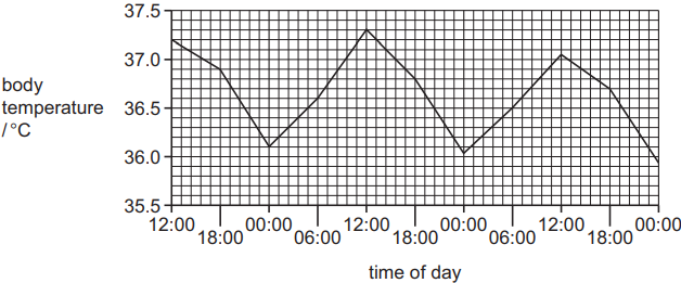 The graph shows changes in the body temperature of a person over a 60-hour period.