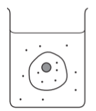 The diagrams represent four similar animal cells immersed in blood plasma.