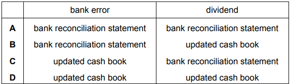 Waseem received a bank statement. He found that the bank had charged interest twice in error and that a dividend had been received on an investment.