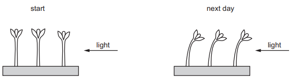 The diagram shows what happened in an experiment with plant seedlings.