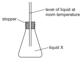 The diagram shows a flask which has been filled with liquid X at room temperature.