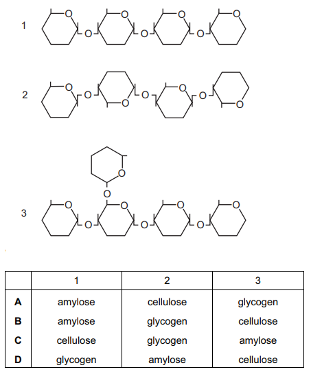 Diagrams 1, 2 and 3 show the structural formulae of three polysaccharides.