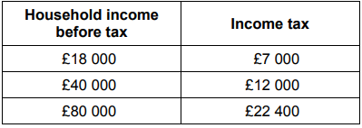 The table below shows annual income before tax for three different households and the total annual amount of income tax that each household pays.