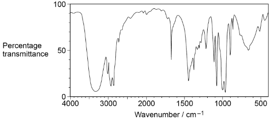 The infrared spectrum of an organic compound is shown.