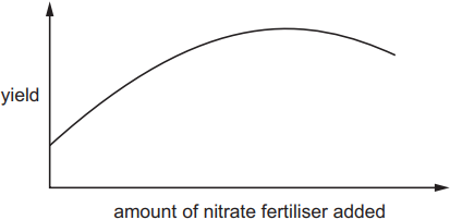 The graph shows how the yield of a wheat crop varies with the addition of different amounts of nitrate fertiliser.