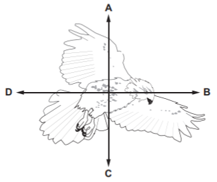 The diagram shows a bird in flight. The bird is flying in a horizontal direction to the right.