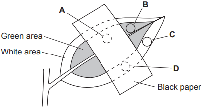 The plant was kept in the light for 2 days. Four discs were cut from the leaf.