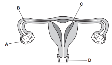 The diagram shows the female reproductive system.