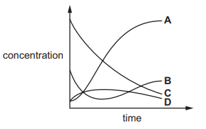 The graph shows how the concentration of components of an enzyme-catalysed reaction changes with time.