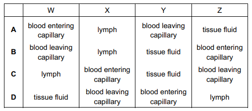 • W lacks large plasma proteins and red blood cells and has a higher water potential than Z.