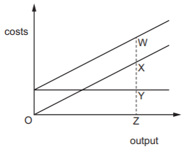 The diagram shows the fixed costs, variable costs and total costs of a firm.