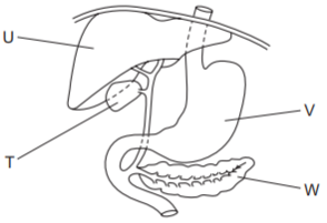 The diagram shows part of the alimentary canal and associated organs.