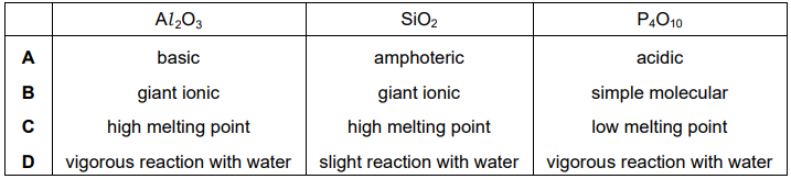 Aluminium, silicon and phosphorus are elements in Period 3 of the Periodic Table. Each element forms an oxide.