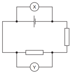 The circuit shown includes two meters X and Y, connected correctly.