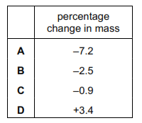 The percentage change in mass was then calculated. Which cylinder had a water potential similar to the 10% salt solution?
