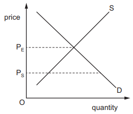 n the diagram, suppliers have set the price of a product at ${P_S}$. Economic theory predicts that the equilibrium price of the product will rise to ${P_E}$.